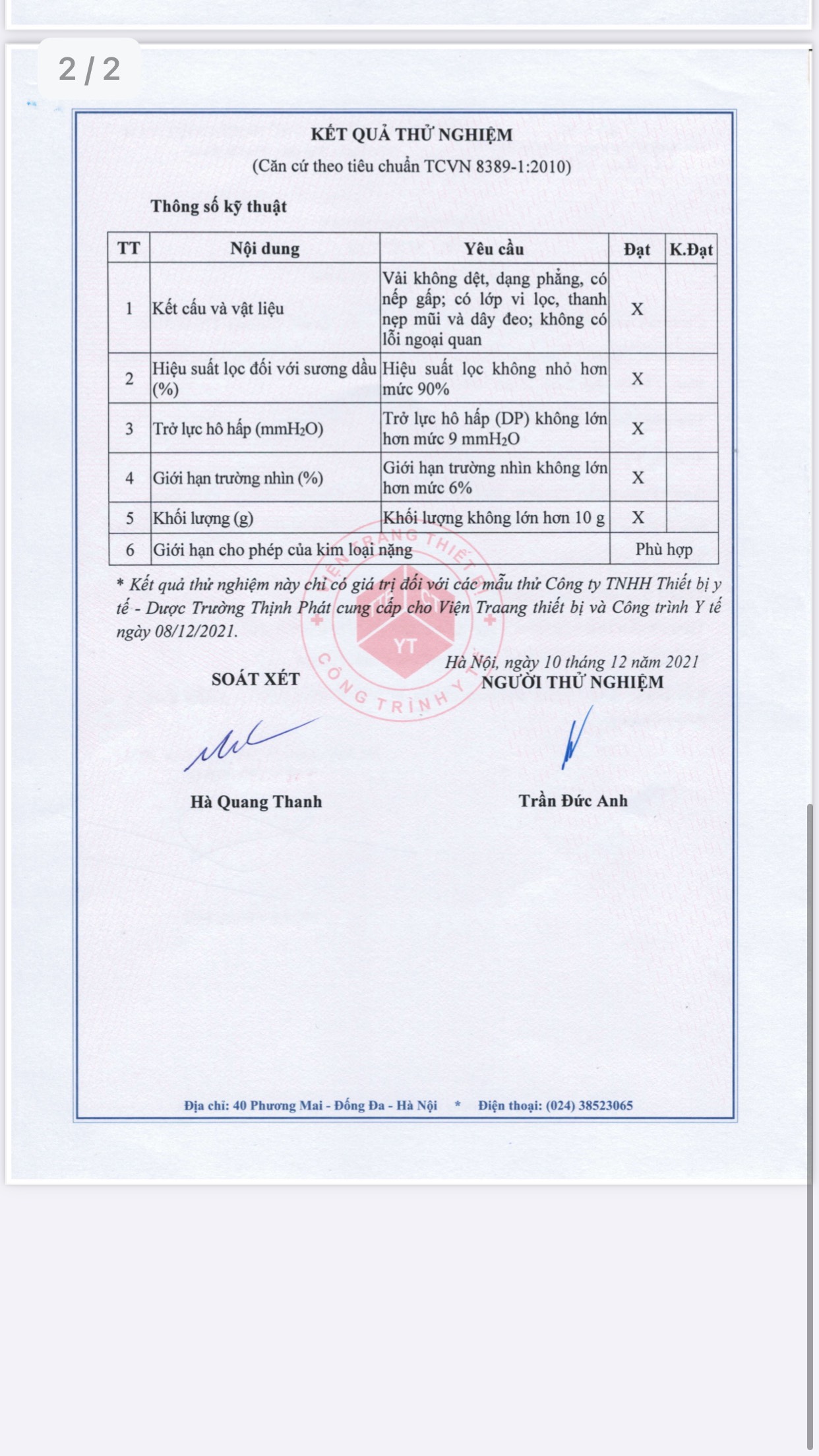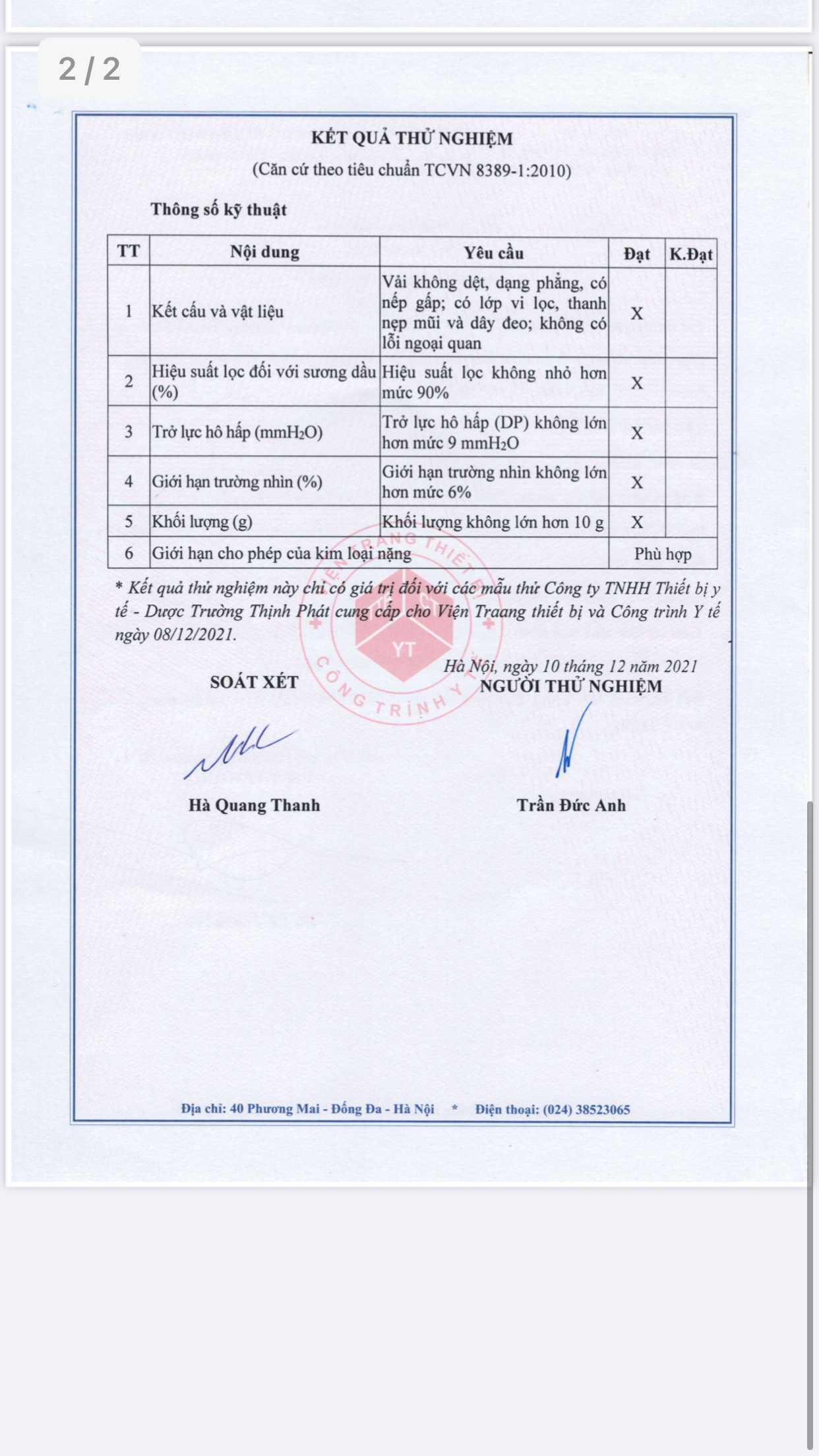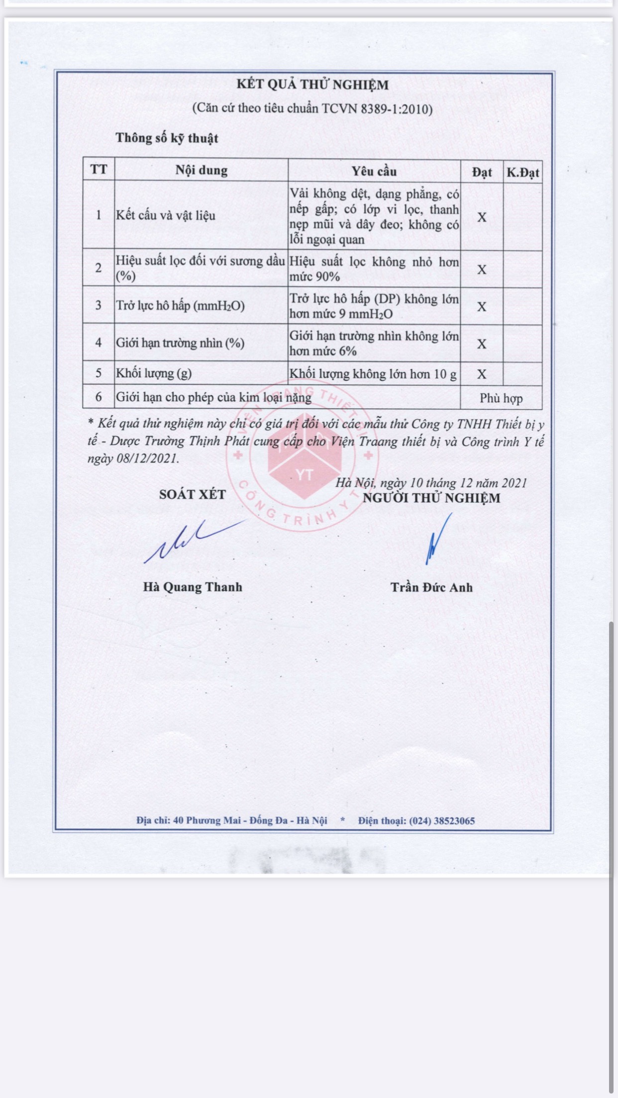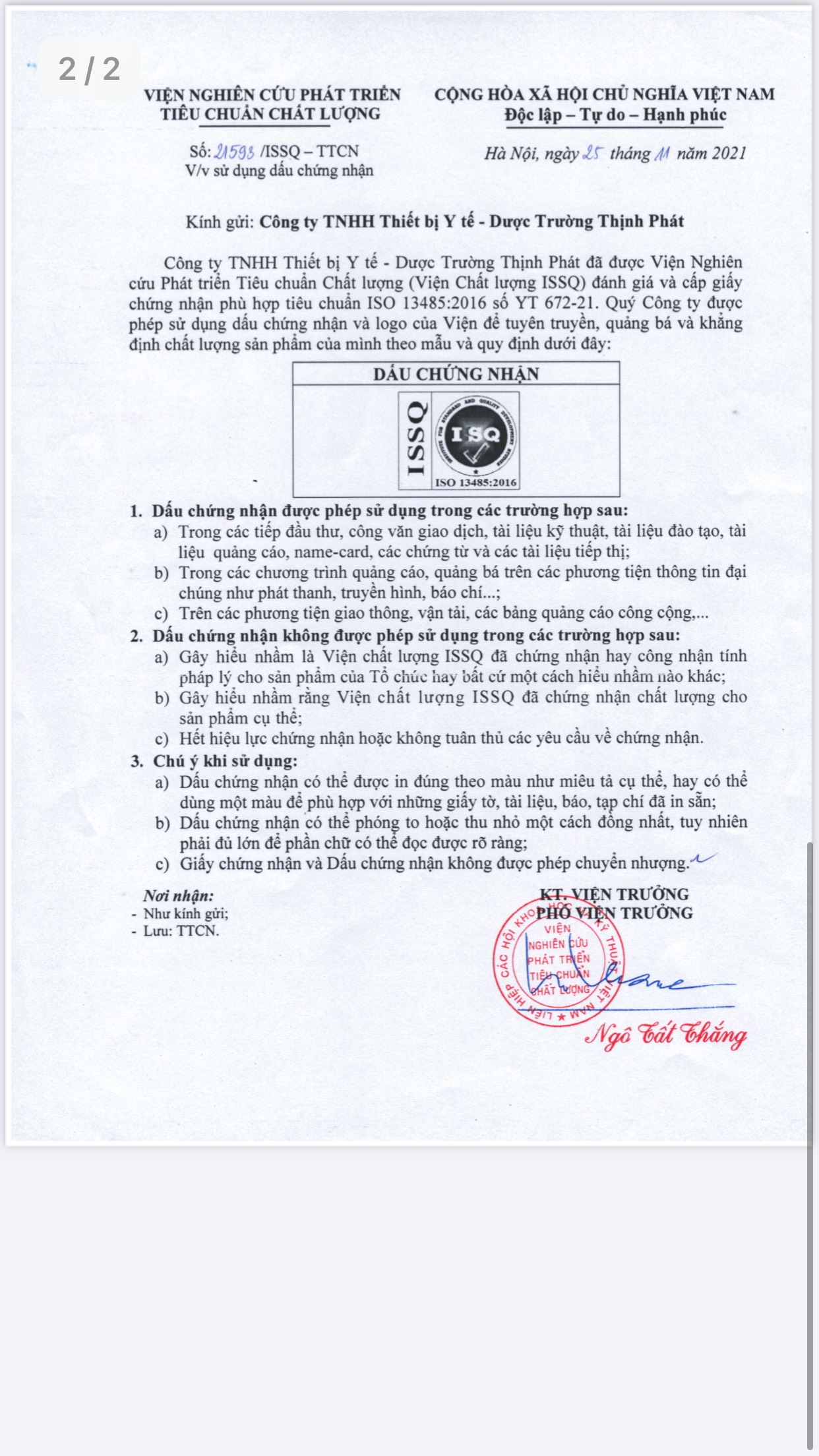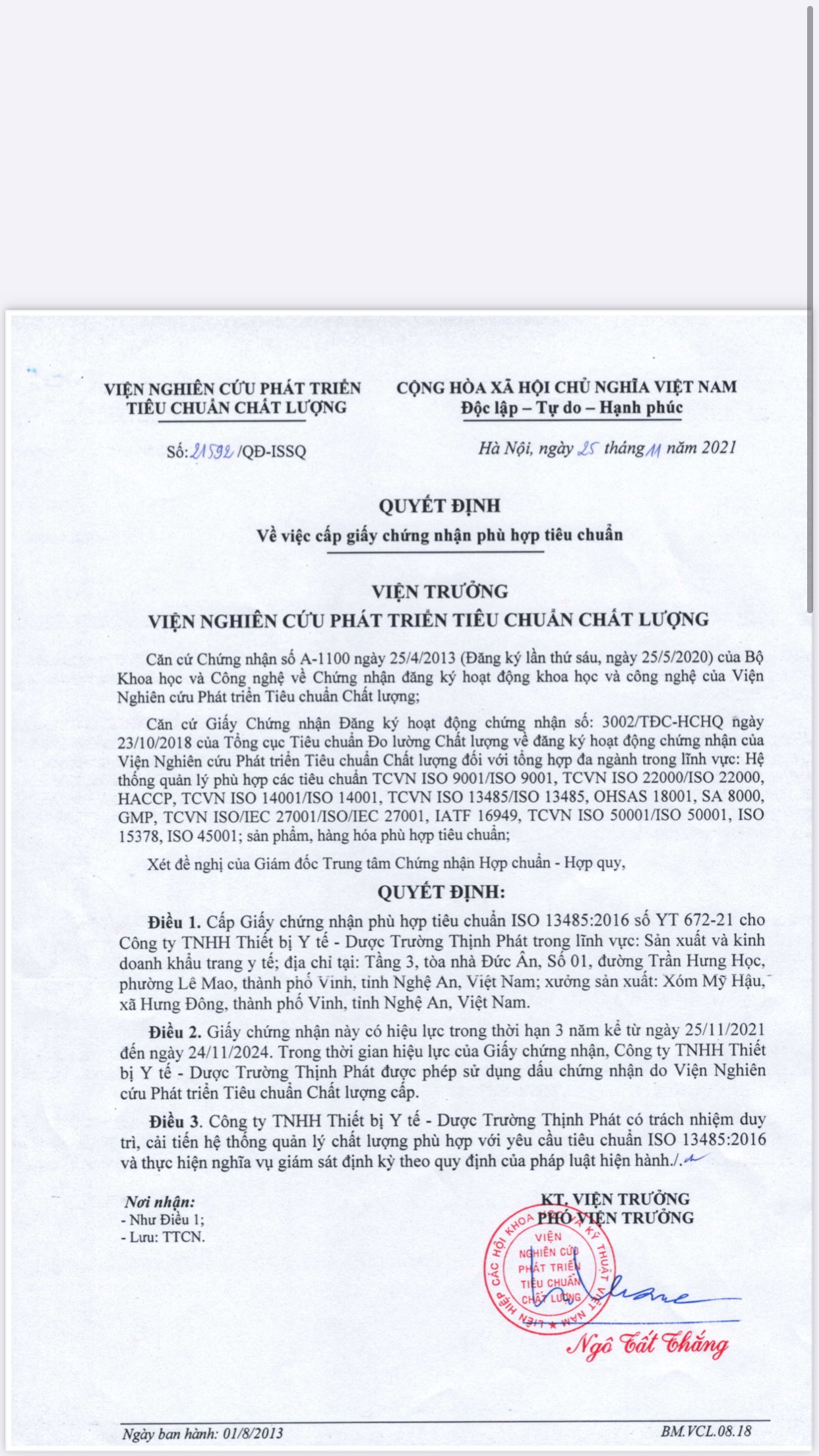 CHỨNG CHỈ CHẤT LƯỢNG